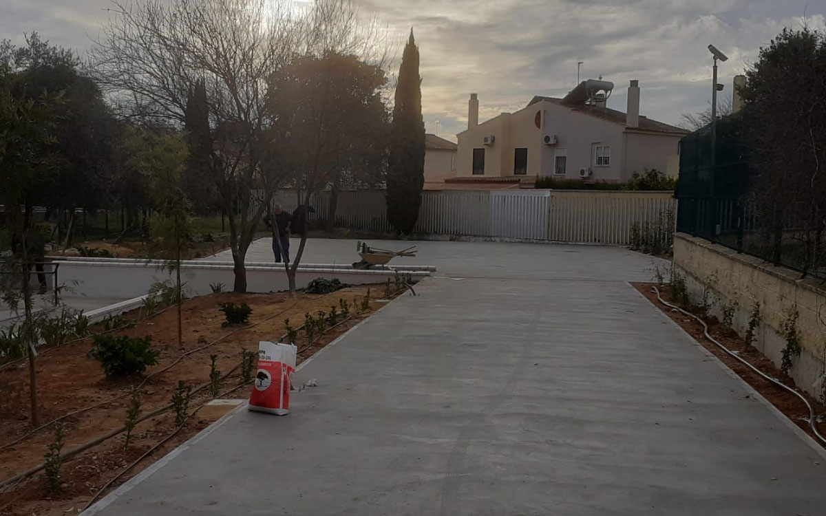 Actuación realizada en el IES Las Encinas, en Valencina de la Concepción, para la reconstrucción de aparcamientos demolidos en el marco de un estudio arqueológico.